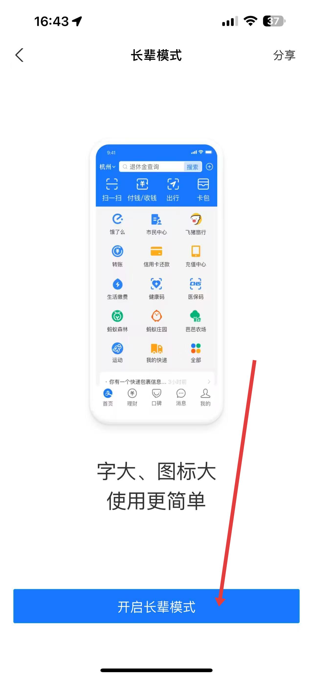 4、进入长辈模式页面后,点击开启长辈模式按钮,即可成功开启。