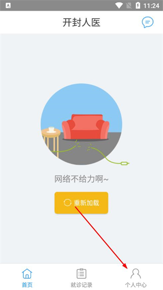 1、打开开封人医app,点击底部导航栏的个人中心选项。