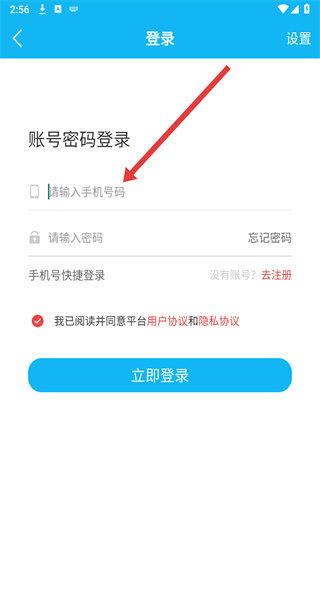 4、跳转到登录页面,点击输入框依次填写手机号码和登录密码后,即可完成登录。