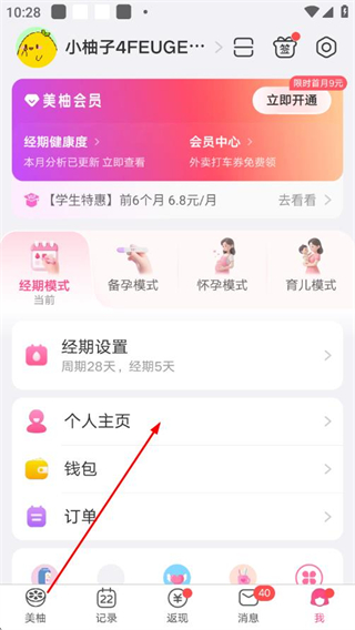 1、打开“美柚”APP进入模式选择页面,根据自身需求挑选经期备孕等模式,若选经期模式,点击进入后可开启经期管理智能预测等服务。