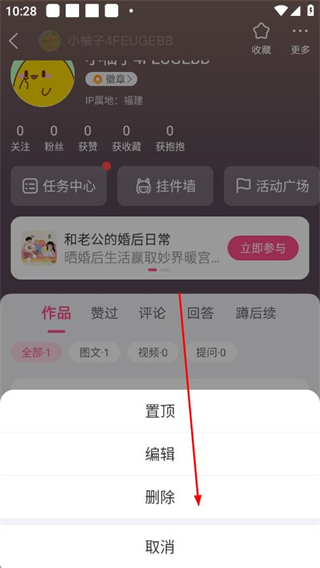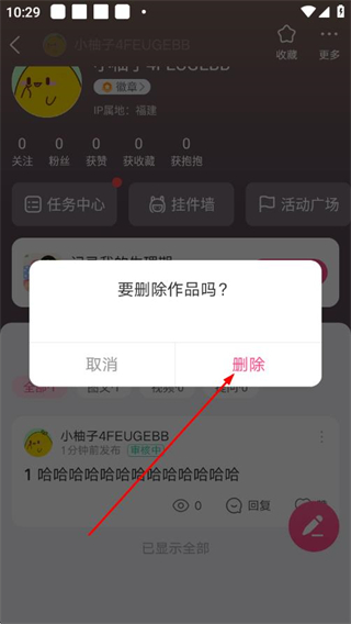 5、在确认弹窗中,点击删除,即可完成帖子删除。