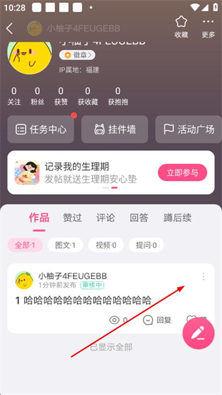 3、在个人主页的作品列表中,找到要删除的帖子,点击帖子右上角的...。
