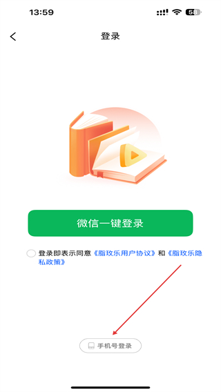 2、进入登录的界面内,点击下方手机号登录的按钮。