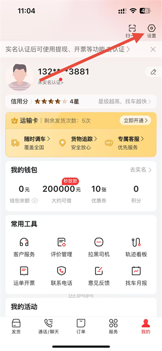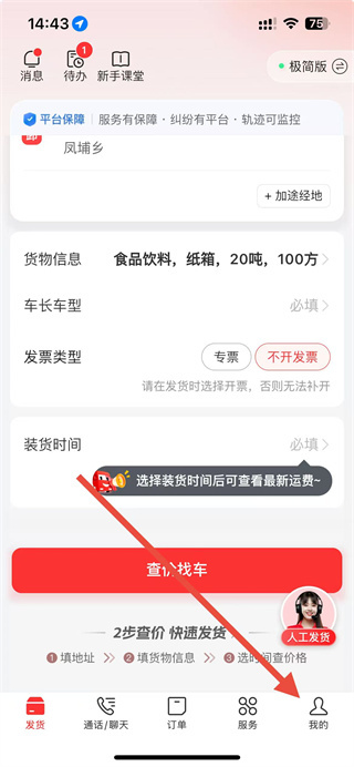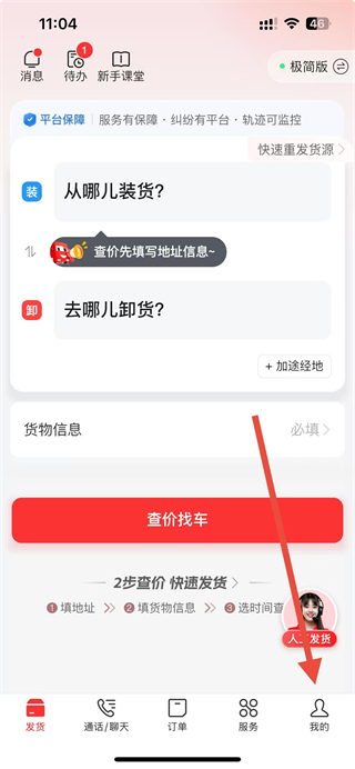 1、在运满满货主app界面点击我的选项,进入个人页面。