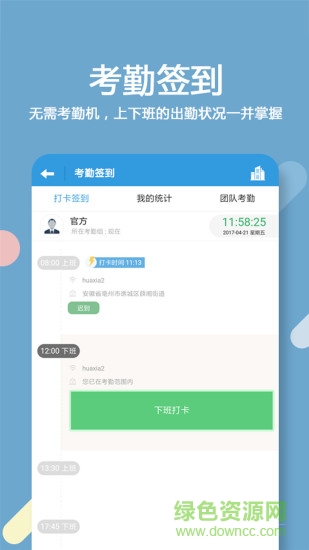 3、考勤签到,无需考勤极,上下班的出勤状况一并掌握