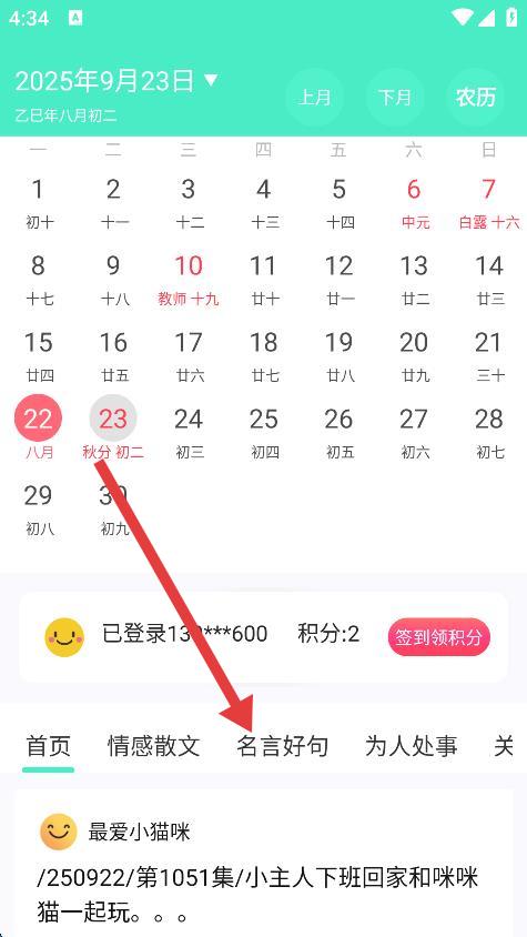 1、打开天天日历,在分类栏中点击名言好句选项。