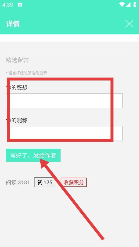 4、填写完成后,点击写好了,发给作者按钮,即可发送给作者。