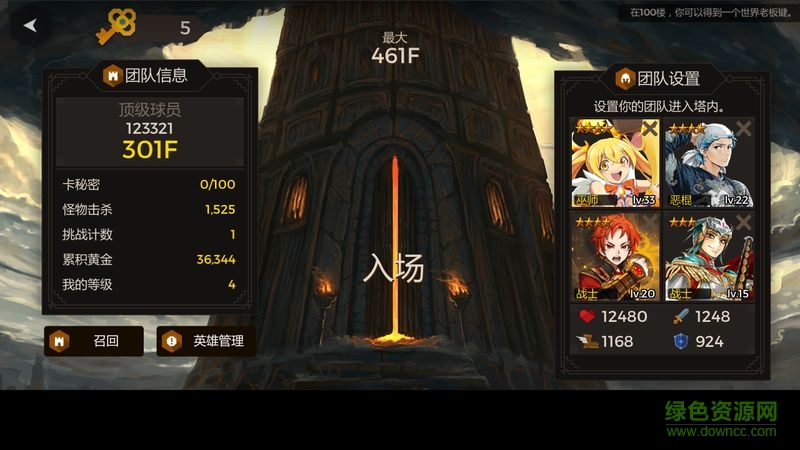 秘密之塔500F是一款动作冒险类的角色扮演类的游戏,你将组建你的队伍,召唤英雄来帮助你探索秘密之塔,体验刺激酷爽的战斗快感,还可以收集个各种武器装备来武装自己,和各种恶魔进行决斗,成为世界的英雄,为世界而战斗。