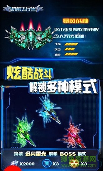 1、多种战机,等你解锁,自由强化升级,势不可挡,体验战斗胜利;