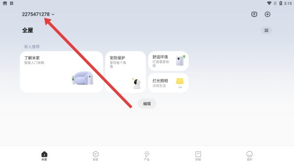 1、在米家APP首页中,点击左上角的账号名称,展开弹窗。