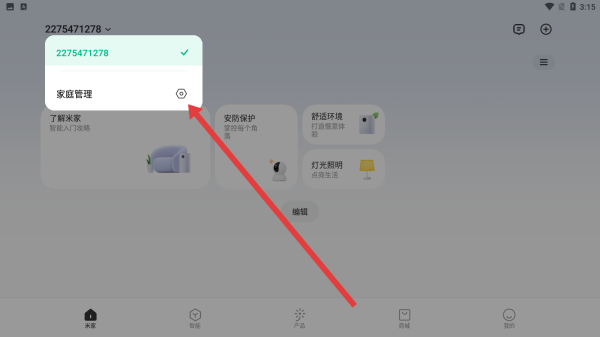 2、可以通过点击弹窗列表中的齿轮图标,进入家庭管理页面。
