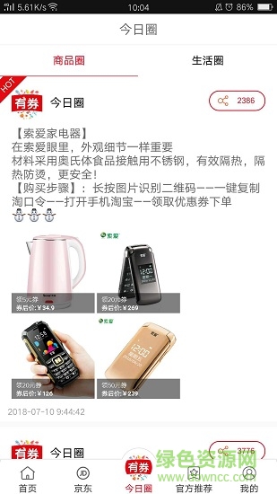 今日有券是一款拥有超多优惠券信息的手机购物平台,商品检索优惠券领取,在线购物即刻满减省钱购物超值优惠。快来绿色资源网下载体验吧!