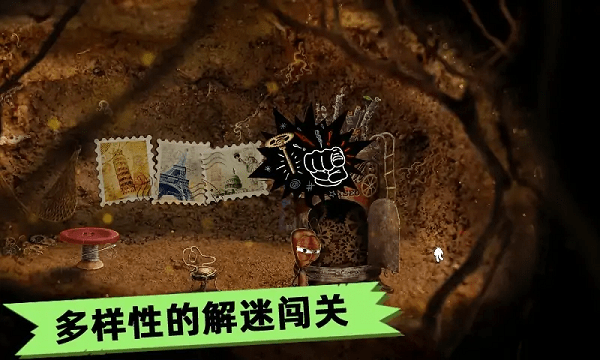 11、原始蚁穴用软梯下去之后,迟迟下不去,因为怕守卫看见,点击灯。(萤火虫做灯,这点很棒;守卫被引开之后,点击灯的左上,紧贴着灯,有个土的凸起(乱点即可)上去之后别忘了右边的纽扣。