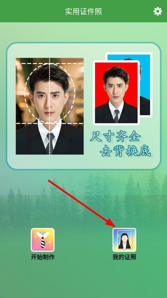 1、打开实用证件照app,在主界面点击我的证照选项,进入保存照片查看页面。