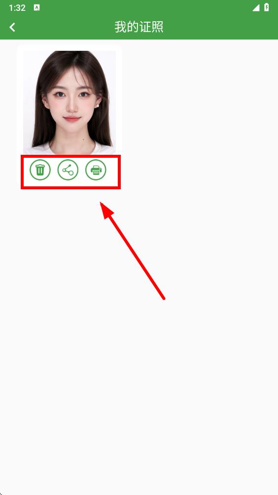 4、在照片下方有功能按钮,从左到右分别是删除、裁剪、打印等功能按钮,可根据需求进行操作。