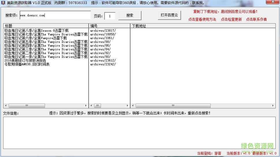 美剧资源搜索器是一款免费的美剧视频搜索工具,覆盖了全网的美剧资源,拥有强大的搜索引擎,可快速检测用户关键词并提供下载地址,不限次数免费使用,无广告无插件,绿色安全,需要的朋友欢迎来绿色资源网下载!