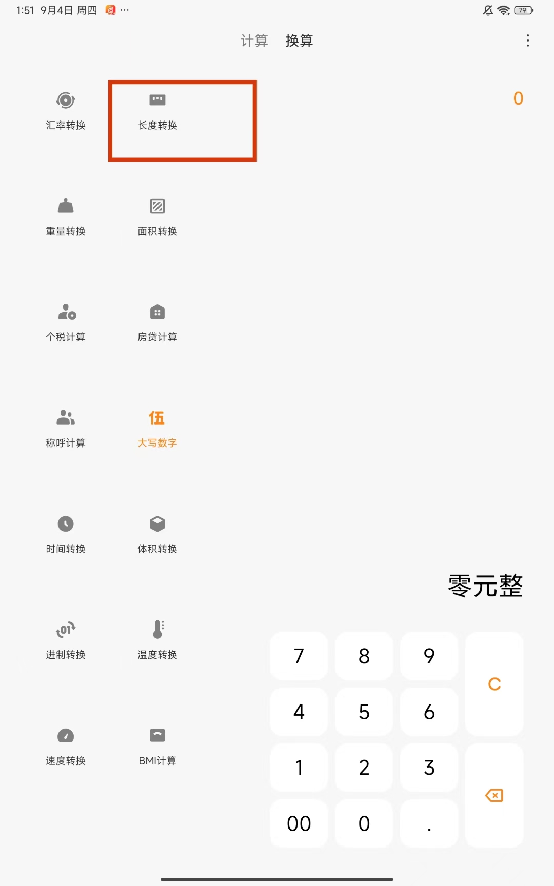 2、在换算功能页面里,找到并点击长度转换选项,进入长度换算界面。
