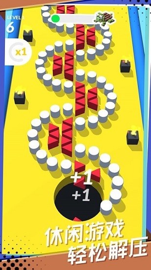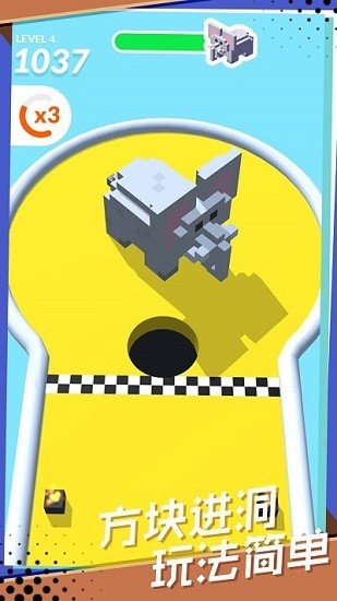 一款休闲闯关游戏,在这里,玩家的任务就是让方块进洞,每个关卡中都有非常多的方块,所以玩家不能遗漏任何一个方块,在游戏中还有非常多的游戏设定,所以玩家要注意到这些设定,并且根据这些来想一个方法与策略,让自己尽快的赢得比赛的胜利。