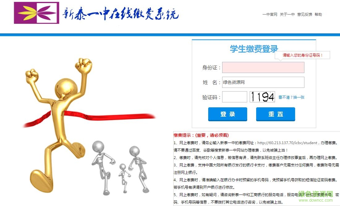 1、网上缴费时,请务必输入新泰一中的缴费网址:http://60.213.137.70/icbc/student,办理缴费。