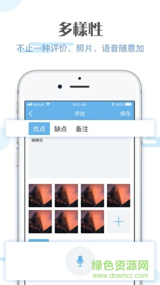 2、支持多样性的评价功能,提供语音照片评估方式