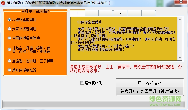 魔力辅助是一款功能强大的qq游戏工具,能为玩家提供多款游戏辅助,包括桌球瞄准器、升级记牌器、斗地主记牌器、大家来找茬辅助、美女找茬辅助,够级记牌器等,让你在游戏中赢得胜利,成为大神,喜欢的话就来下载使用吧!