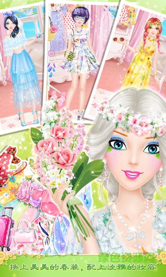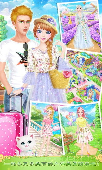 打开游戏,准备开始一次令人期待的春游吧~先到美妆间为自己化上一个清新淡雅的妆容。哇~梳妆台上的化妆品琳琅满目,色彩甜美的唇彩、粉嫩雅致的腮红、缤纷魅惑的眼影……不过别忘了要先从最基础的底妆开始一步一步来哟!接下来进入时装屋,淑女风还是休闲风,小清新还是御姐范儿,根据朋友们的建议尽情装扮吧!一切搞定,这就出发吧。清新的空气,淡淡的花香,再加上身旁有好友相伴,嗯~这种感觉真是惬意极了。玩累了也没关系,大家一起去购物吧,可以用获赠的爱心来换购更多精美服饰,下次出行也不用愁了。最后,别忘了和朋友一起合影留念,“咔擦~”,这份回忆真是珍贵而难忘呢!