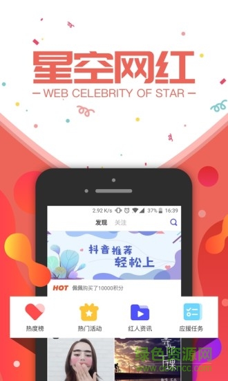 星空网红app是专为粉丝设计的一款追星平台,汇聚各大主流平台的短视频为一体,在这里你可以和明星、网红零距离接触,实时关注爱豆排名度,帮助爱豆刷排名,欢迎来绿色资源网下载!