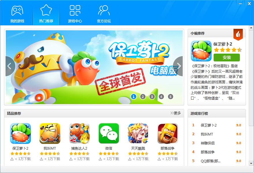 手游部落是一款免费让手机游戏和应用在电脑上运行的软件,目前可以支持安卓版的手机游戏和应用。手游部落中的"热门推荐"和"游戏中心"提供大量热门好玩的手游,安装后即可畅玩。