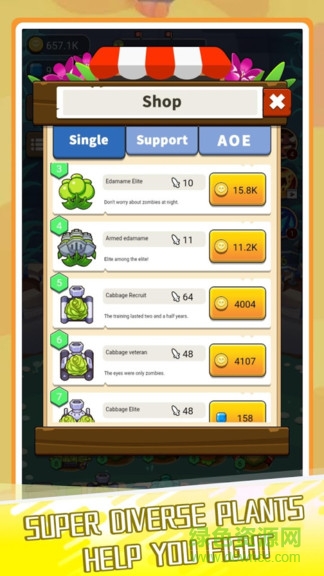 49种功能互不相同的植物,并可收集硬币购买蜗牛等多种道具。