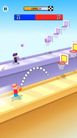 奔跑篮球非常好玩的一款体育运动手游。玩家在游戏中要控制篮球要稳准快的把它投入到球框里面。游戏获胜的方法就是投入的球数量比对手多。游戏采用3d建模,画面非常精致,还配有非常激情的音乐。喜欢篮球的朋友们快来下载吧。