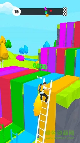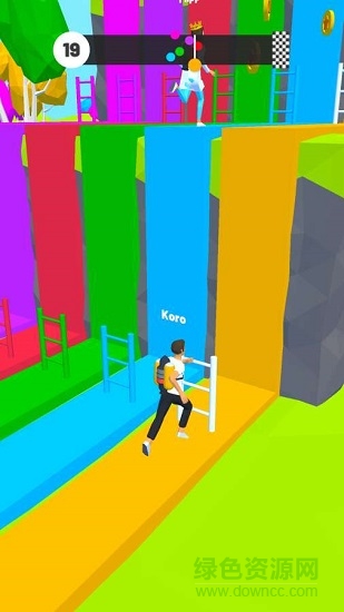融合了爬梯子与跑酷的动作冒险游戏,清新而又简约的画风设计,各种不同的赛道关卡,比如说搭建在高台之下的梯子,需要玩家去攀爬,建造在水面上的晃动的吊桥……都是比赛的跑道,增加难度,玩家们要注意沿途收集一些金币哦,可以兑换道具。