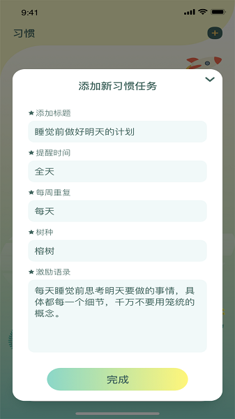 -- 鼓励自己去打卡完成目标,一次一个任务来改善你的生活习惯!