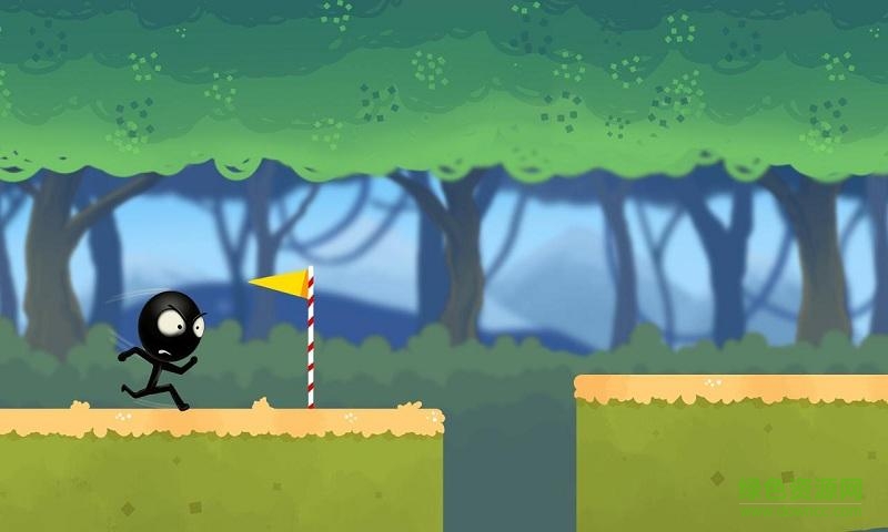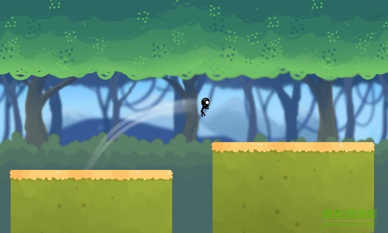 1.开始火柴人会自动奔跑,刚开始只有一些断层的沟谷障碍,玩家想办法跳跃过去,火柴人奔跑的比较快,需要玩家有一定的反应程度。