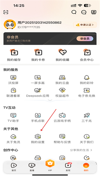 1、启动沃视频APP,在首页导航栏中点击我的。