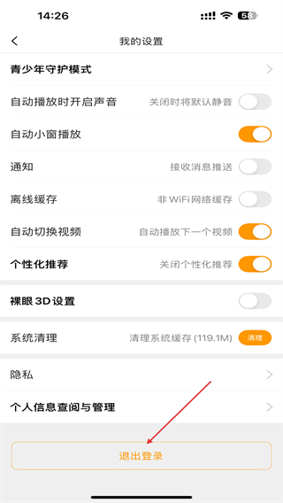 3、在我的设置页面内,点击最下方退出登录的按钮。