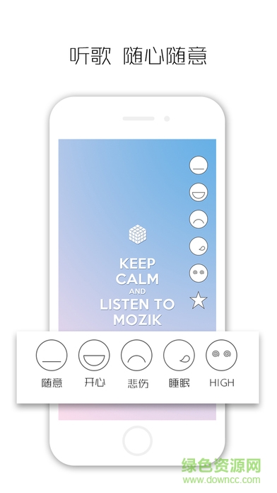 mozik ios是一款非常好用的手机听音乐软件,软件界面十分简洁,有详细的开心、悲伤、睡眠等音乐分类,还可以随时更换音乐壁纸,喜爱的朋友赶快到绿色资源网下载体验吧!