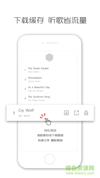 1.极简的心情音乐电台,利用丰富的手势操作,独特的用户体验。