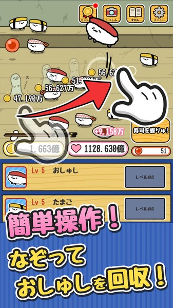 2、主要通过手指收集的方式去收获更多寿司,然后卖给顾客吃掉。