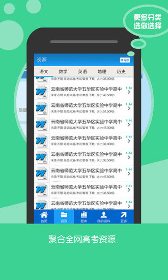高考资源网苹果版是最大的高中教学参考资源网站推出的一款学习软件,软件的题库包含300多万套试题,每日更新教学资料2000多套,所有线上资源均可免费下载,想看就看,帮助孩子提升成绩,感兴趣的朋友可以来绿色资源网下载!
