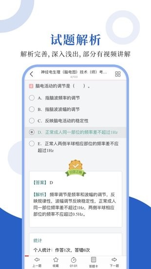 专为神经电生理考试精心准备的考试配套题库,每一道试题都有答案解析,为考试提供了充分的复习准备,可随时随地学习练习,支持手机、平板多端同时使用。
