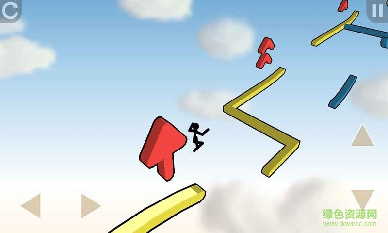 2、游戏中玩家可以操控一位奔跑的火柴人,控制它的方向,以及在合适的时候起跳,安全的到达终点就可以过关。