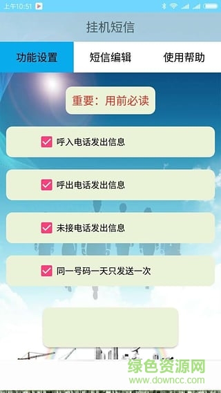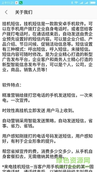 挂机短信大众版app是一款免费的短信回执自动发送软件,营销必备应用哟,全新版本上线,需要的朋友赶紧来绿色资源网下载吧