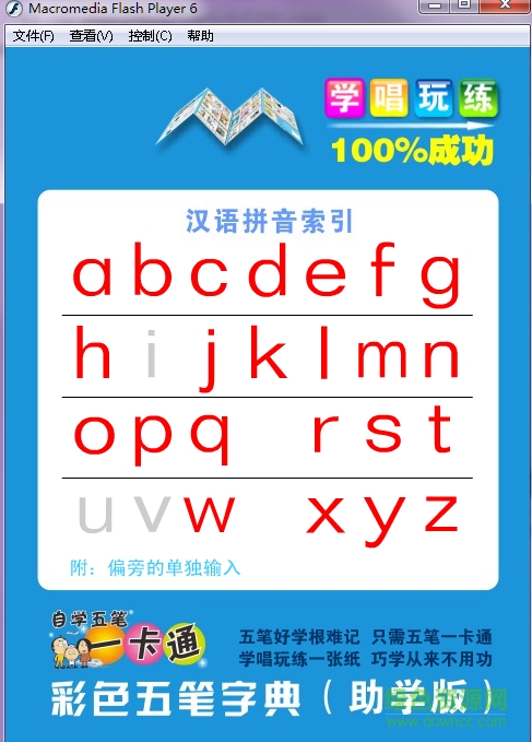 直观易用的助学版彩色五笔字典,内含五笔入门、字根歌动画、五笔规则口诀、翻卡片、打气球、最佳上手练习材料等助学资源。