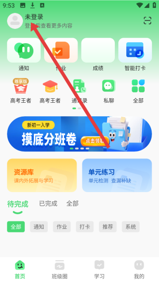 1、在河南校讯通app首页中,可以点击左上方的未登录按钮,进行登录操作。