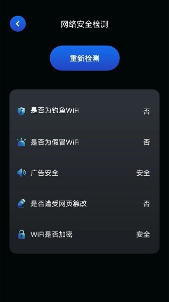 wifi无线网测速是一款网络测速工具,帮您快速测试当前网络,快速查看当前网络,分析当前网络状况。扫描你连接的WiFi是否为钓鱼WiFi或其他不法WiFi,保护您的上网隐私安全,智能识别检测WiFi安全。