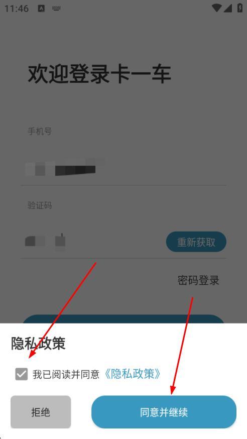 3、勾选我已阅读并同意隐私政策,点击同意并继续,点击登录按钮。