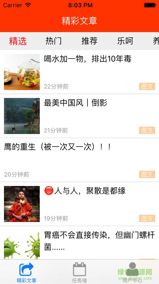 传客美文网苹果版是一款非常好用的阅读赚钱app,这里汇集了丰富的文章资源,热门、推荐、养生、精选文章应有尽有,用户只需要阅读并进行分享转发即可获得收益,欢迎有需要的朋友到绿色资源网下载使用!