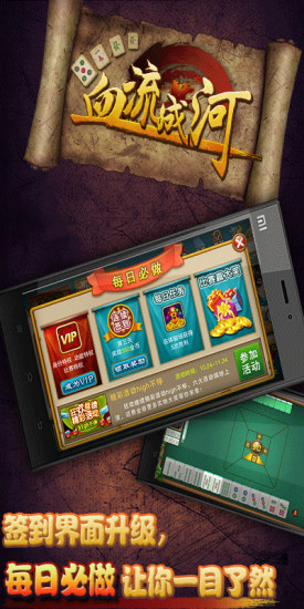 《血流成河》起源于四川、宜昌地区,融合欢乐四川麻将及天天血战到底的游戏规则,在传统的4人打麻将的基础上增加缺一门玩法,胡牌番数没限制,牌局以抓光牌为终止点。手机联网比单机版下载更好玩,与百万血战麻将高手在线对局,拼的不只是技巧口诀,更是胆识魄力,谱写属于您的“血流英雄传”!每天开放丰富的比赛专场,更有众多大奖等你来拿!