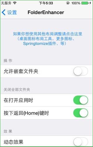 《iOS7/iOS8文件夹增强》(FolderEnhancer)插件汉化版 是经典文件夹增强插件,在iOS4,5,6固件时期,由于功能多而实用,广受好评。FolderEnhancer (iOS 7)是FolderEnhancer专为iOS7制作的独立版本,功能依旧针对文件夹。