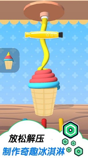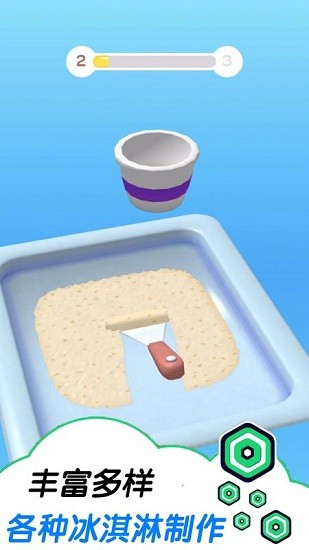 是一款冰淇淋制作的经营类模拟游戏。所有的玩家在游戏中将会有一个冰淇淋加工间,你可以在这里做很多种类的冰淇淋,然后售卖换取大量的收益。同时你还要解锁很多的材料,这样你制作的冰淇淋才会更加的多样化,喜欢的人才会更多。